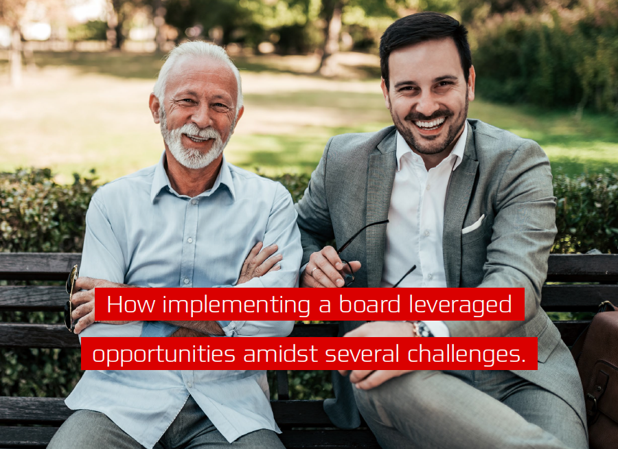 Christos felt that implementing a formal board immediately was not the right thing to do given the difficult circumstances that the management team found themselves in during a period of uncertainty and that had not been experienced by anyone before.